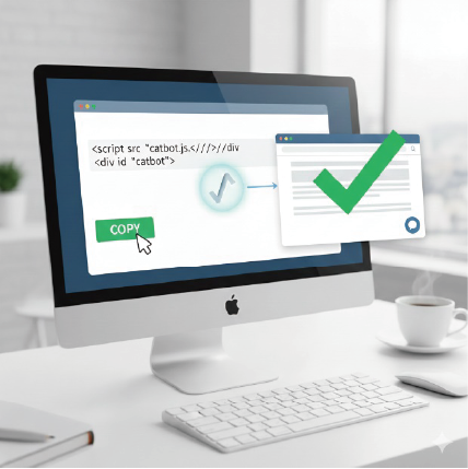 自動生成されたHTMLタグを貼るだけで、自社サイト上にSuttoChatの設置が完了します。また、自動発行されるQRコードからアクセスする事も可能です。
